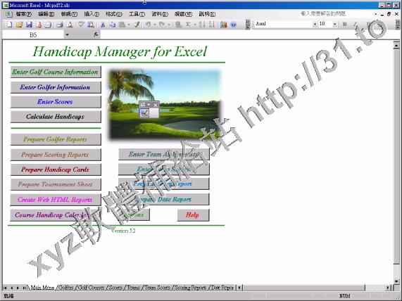 Handicap Manager For Excel v5.2b Regged 英文正式版(用於高爾夫運動的統計及維護軟體)