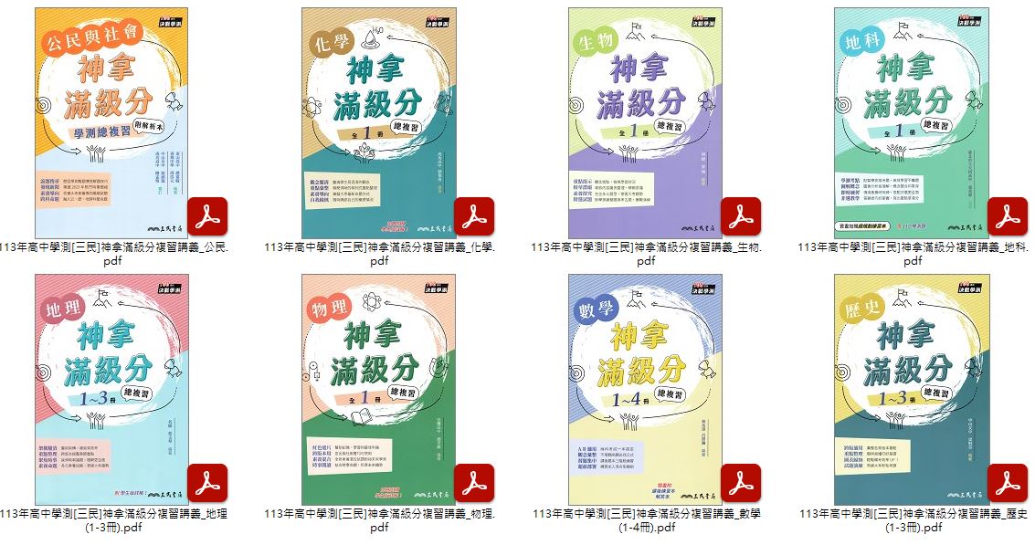 113年高中學測[三民]神拿滿級分 + 滿分應試王 學測複習講義 講義光碟