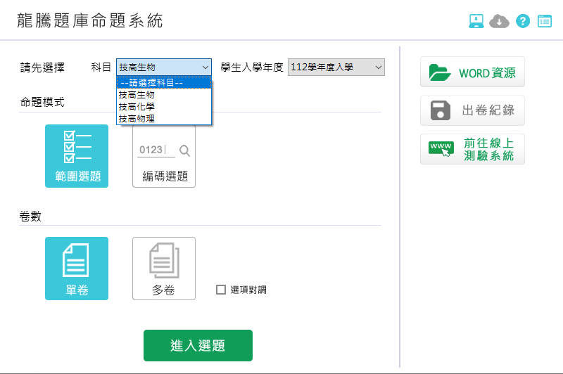 112學年上學期 技術高中命題光碟 龍騰版 自然科(物理(A全、B上、B下)、化學(A(全)、B(全))、生物(A全))(108課綱) 題庫光碟