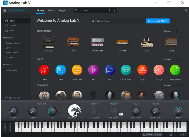 Analog Lab是由Arturia推出的一款音樂合成軟體,擁有21種經典鍵盤音效模型,此軟體可以類比各種樂器的聲音,你能夠隨時隨地創造有機音質,可讓您從Arturia V Collection 6中獲得6500多種聲音,其精緻的介面具有21種聲音,可用於對經典鍵盤進行建模。