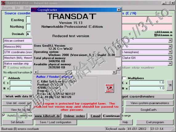 • Killetsoft TRANSDAT v17.02 英文正式版(地理坐標轉換軟體)